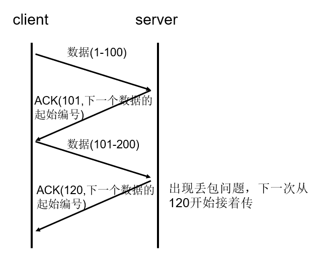 超时重传:在上面说了序列号的作用,但如果发送方在发送数据后一段时间内(可以设置重传计时器规定这段时间)没有收到确认序号ACK,那么发送方就会重新发送数据。 这里发送方没有收到ACK可以分两种情况,如果是发送方发送的数据包丢失了,接收方收到发送方重新发送的数据包后会马上给发送方发送ACK;如果是接收方之前接收到了发送方发送的数据包,而返回给发送方的ACK丢失了,这种情况,发送方重传后,接收方会直接丢弃发送方冲重传的数据包,然后再次发送ACK响应报文。 如果数据被重发之后还是没有收到接收方的确认应答,则进行再次发送。此时,等待确认应答的时间将会以2倍、4倍的指数函数延长,直到最后关闭连接。 -
