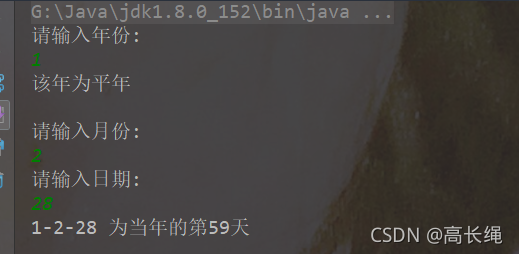 System.out.println(year + "-" + month + "-" + day + " 为当年的第" + sum + "天");
