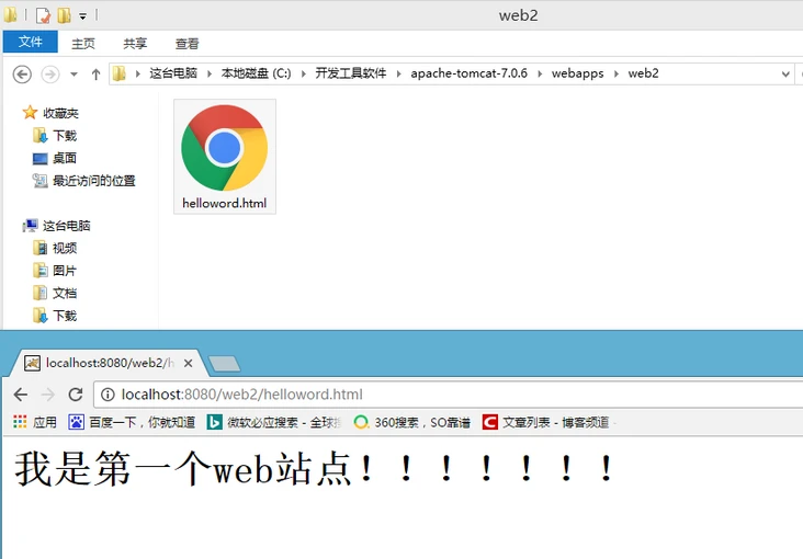 例子:在webapps下创建一个web站点,在web站点下创建一个html文件,访问html文件