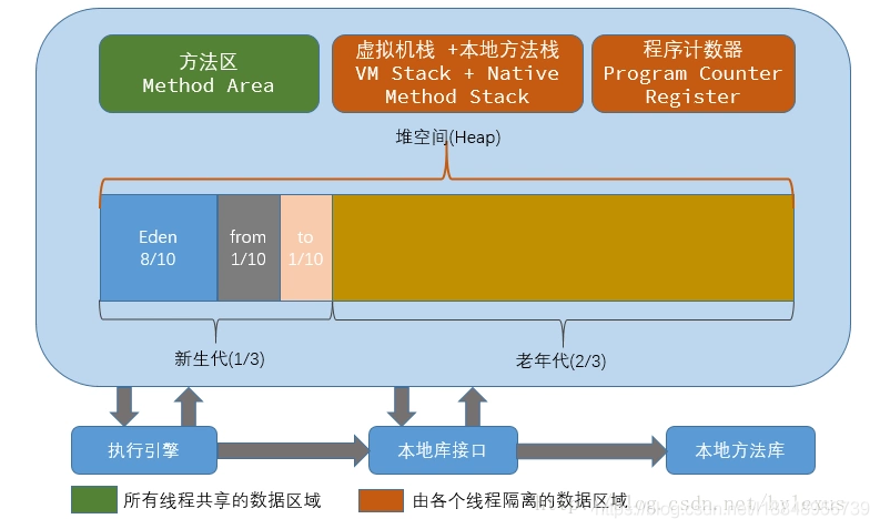 Java Heap是Java虚拟机所管理的内存中最大的一块,它是所有线程共享的一块内存区域。几乎所有的对象实例和数组都在这类分配内存。Java Heap是垃圾收集器管理的主要区域,因此很多时候也被称为“GC堆”。内部会划分出多个线程私有的分配缓冲区(Thread Local Allocation Buffer, TLAB)。可以位于物理上不连续的空间,但是逻辑上要连续。