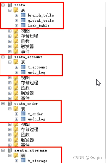 三个库中都需要建立各自的回滚日志表,对应seata中的conf目录下的db_undo_log.sql。