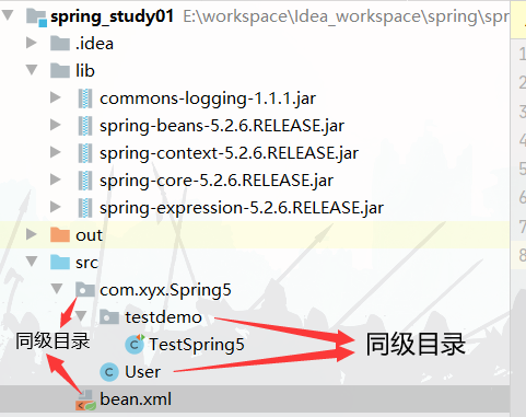 <bean id="user" class="com.xyx.Spring5.User"></bean>