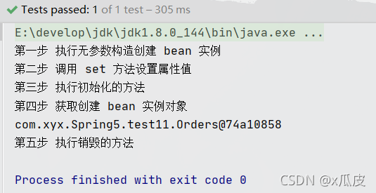 <bean id="orders" class="com.xyx.Spring5.test11.Orders" init-method="initMethod" destroy-method="destroyMethod">