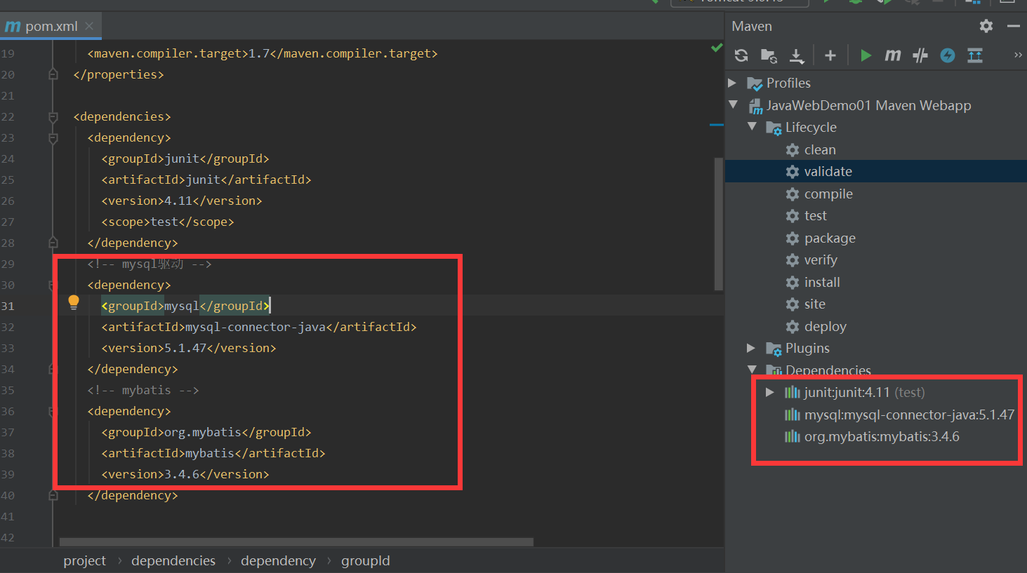 1、在pom.xml中添加Mybatis依赖  2、自定义配置文件,创建mybatis-config文件  3、在mybatis-config文件中配置数据库连接信息