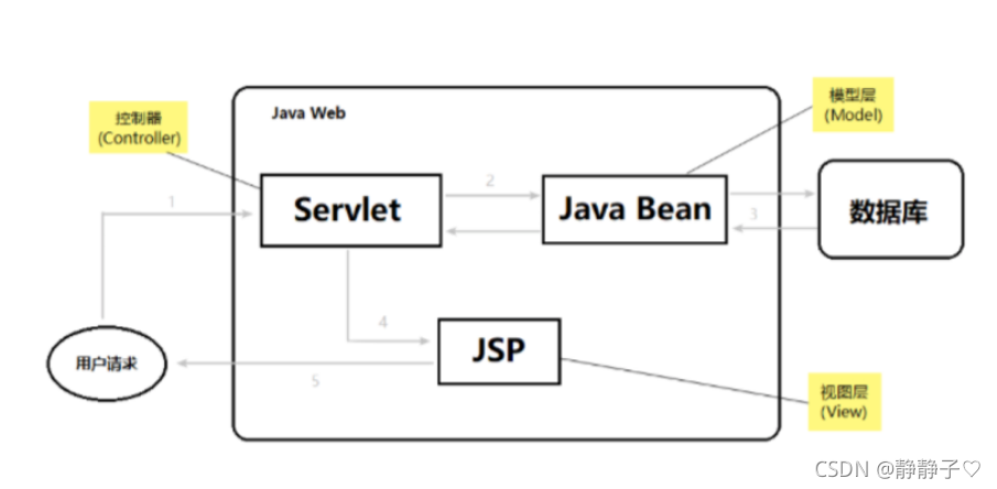 首先用户的请求会到达Servlet,然后根据请求调用相应的Java Bean,并把所有的显示结果交给Jsp去显示完成,这样的模式我们就称为 MVC 模式。