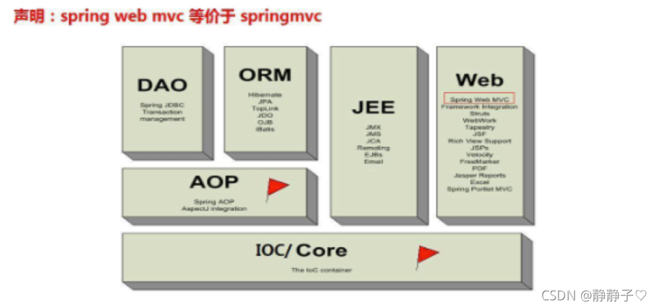 SpringMVC是属于Spring的一个模块,SpringMVC和Spring无需通过中间整合增进行整合,Spring是一个基于MVC的web框架。