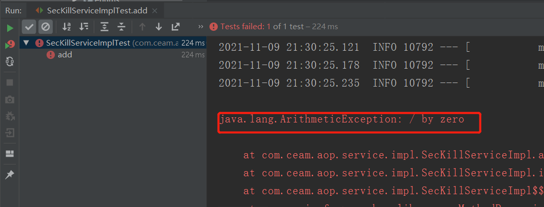int i = 10/0; // 模拟异常