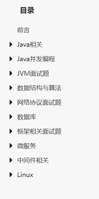 ? ? ? ?每一大章节下面都有很多个小节,由于要控制文章篇幅,就不一一展现出来了。关于完整版面试手册有480页。