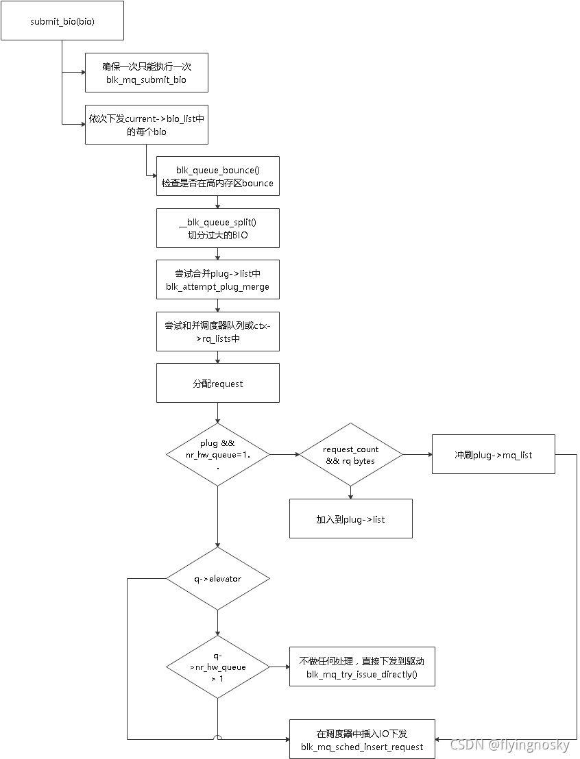 - 若 没有定义IO调度器,可以直接下发(对于较快的硬盘如nvme盘,进入调度层可能会浪费时间,跳过IO调度层有利于性能提升);