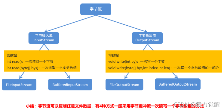 - 如果对于操作需要通过 IO 在内存中频繁处理字符串的情况使用字符流会好些,因为字符流具备缓冲区,提高了性能。