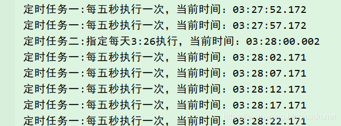 System.out.println("定时任务二:指定每天3:26执行,当前时间:"+LocalTime.now());