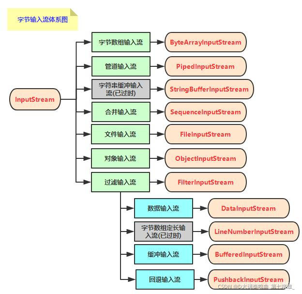 节点流:从特定的地方读写的流类,例如:磁盘或一块内存区域。 过滤流:使用节点流作为输入或输出。过滤流是使用一个已经存在的输入流或输出流连接创建的。