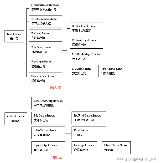 IO流:对于数据的传输,可以看做是一种数据的流动,按照流动的方向,以内存为基准,分为输入input 和输出output ,即流向内存是输入流,流出内存的输出流。