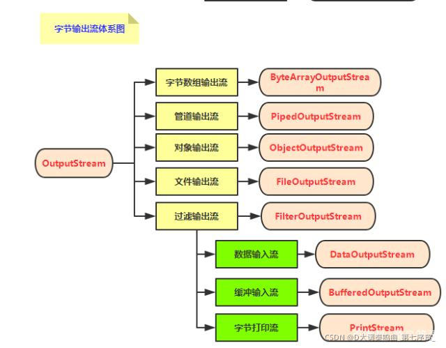 - 输出流: 将 < 内存 > 中的内容写入到 < 存储设备 > 中.