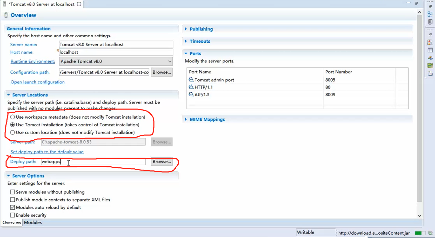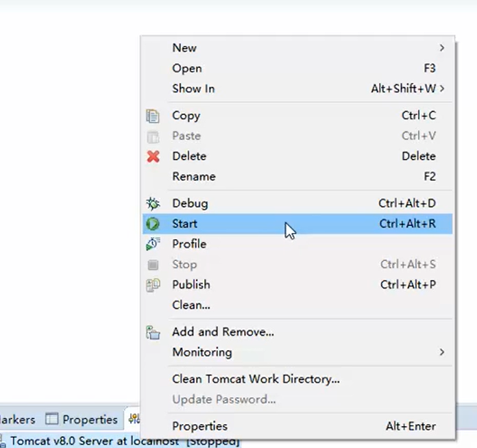 安装链接 : http://www.eclipse.org 安装成功后解压 , 启动Eclipse 该图片为设置代码保存区域,可以调整:  再Eclipse中配置Tomcat : 再window中打开preferences  检查JDK版本是否正确:  检查JRE,没有进行添加:  搭建服务器 , 没有进行添加,添加为tomcat所安装的版本 :   点击下一步 , 配置如图:  配置成功后,框内会有servers:  点击 , 配置服务器 , 选则所安装tomcat的版本:  双击  更改红色圈中的两处配置 , 如图:  然后再Eclipse中右键即可在Eclipse中运行Tomcat: