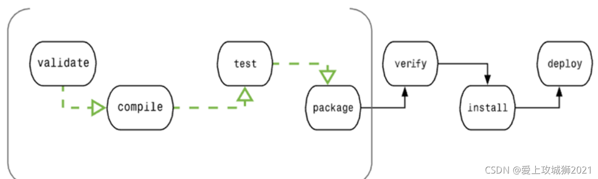 运行任何一个阶段的时候,它前面的所有阶段都会被运行,例如我们运行mvn install?的时候,代码会被编译,测试,打包。这就是Maven为什么能够自动执行构建过程的各个环节的原因。此外,Maven的插件机制是完全依赖Maven的生命周期的。