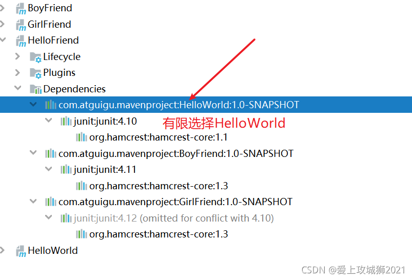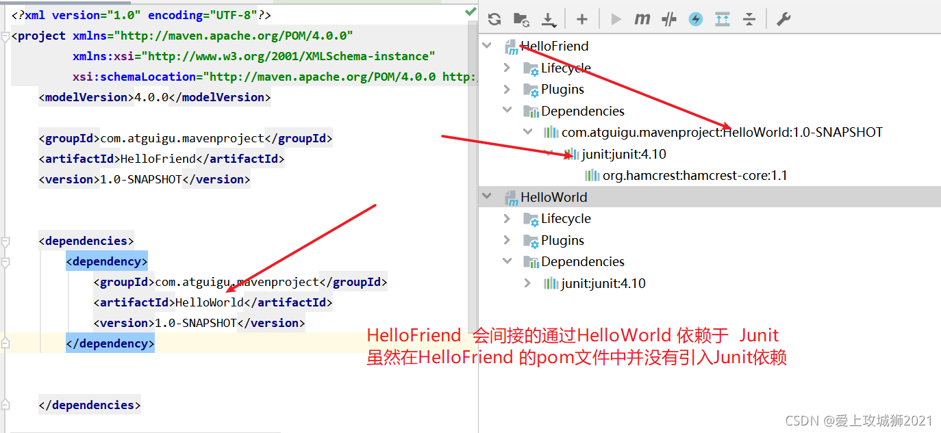 任何一个Maven工程会根据坐标到本地仓库中去查找它所依赖的jar包。如果能够找到则可以正常工作,否则就不行。HelloFriend 回到本地仓库去找HelloWorld? jar包。