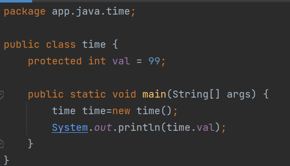 可以看到test与time是在同一个包底下的不同的类,test是可以访问到protected修饰的val