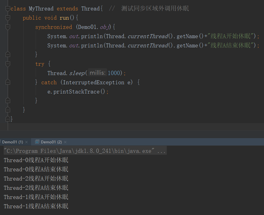 System.out.println(Thread.currentThread().getName()+"线程A开始休眠");