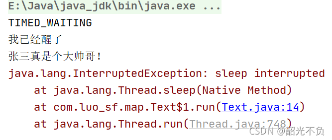 当打断sleep(阻塞状态)时,会清空打断状态。并报错!
