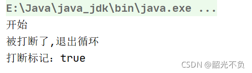 System.out.println("被打断了,退出循环");