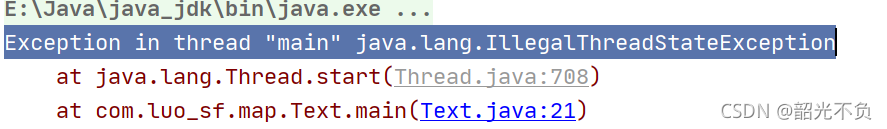 当我们二次调用start时,会发生下图错误:(解决办法:去掉一个start)