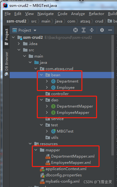 ?运行后bean、dao包、mapper文件下有自动生成的文件