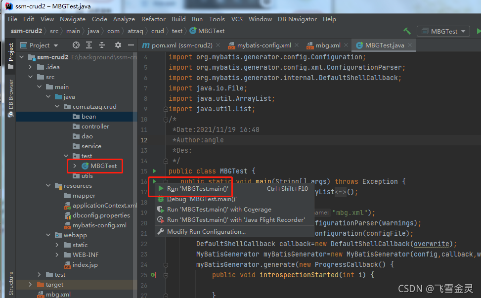 ?4.用java代码的方式带上mbg.xml文件自动生成bean和mapper
