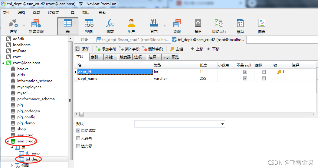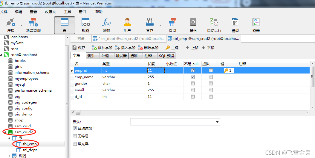 二、创建2张表,员工表tbl_emp,部门表tnl_dept
