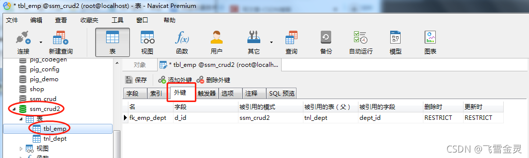 tbl_emp和tnl_dept的外键关联