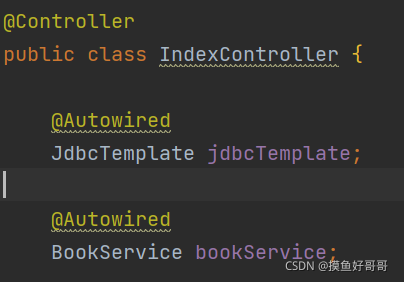 如果BookService没有注入到容器中【会标红,报异常表示找不到该对象(依赖)】: