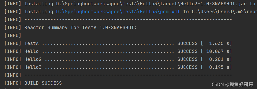 在<modules> 标签中放好项目名称后,在总聚合的项目中调用Maven的install命令即可把<modules> 标签中的所有项目全都安装。
