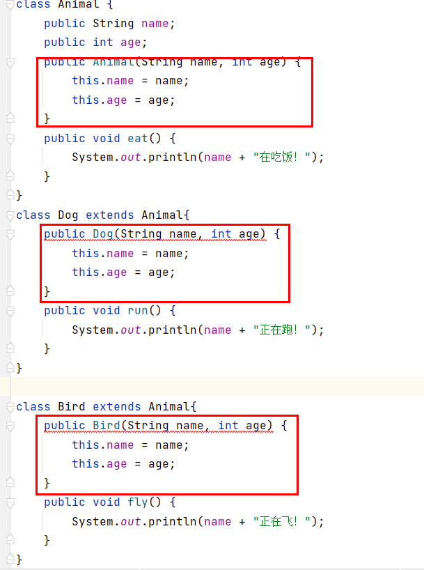 Dog,Bird类的时候后面加上extends Animal ,这代表