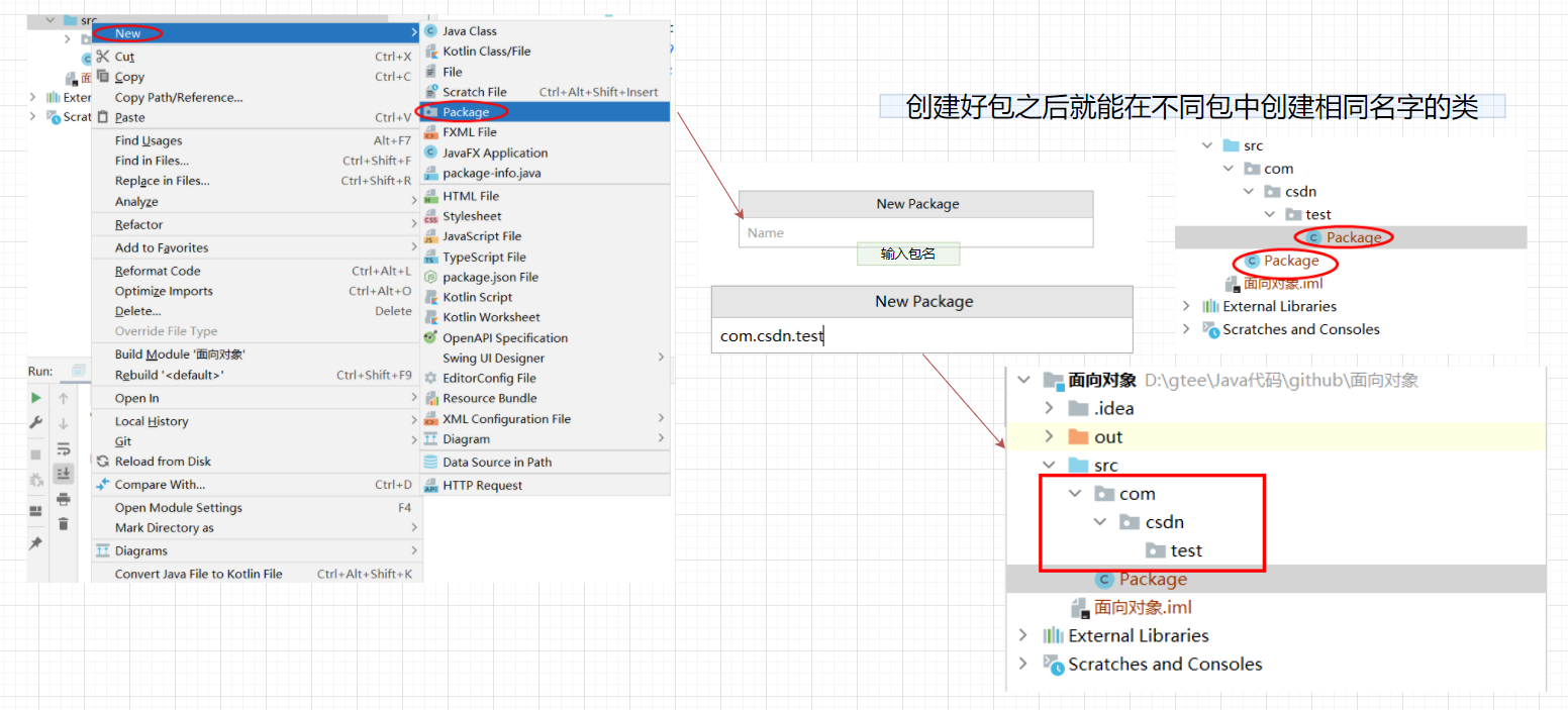 com.csdn.test ,则它所对应的路径为com/csdn/test 。 - 如果没有package包,则这些类会被放在一个默认包中。