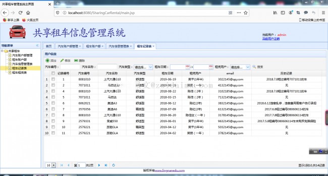 基于servlet+jsp+jdbc的后台管理系统,包含5个模块:汽车账户部管理、租车账户部管理、汽车信息管理表、租车记录表、租车租聘表。功能完整,均能实现增删查改。
