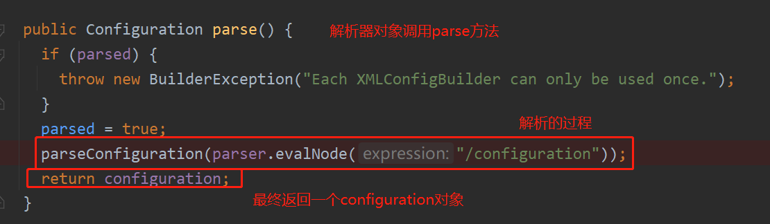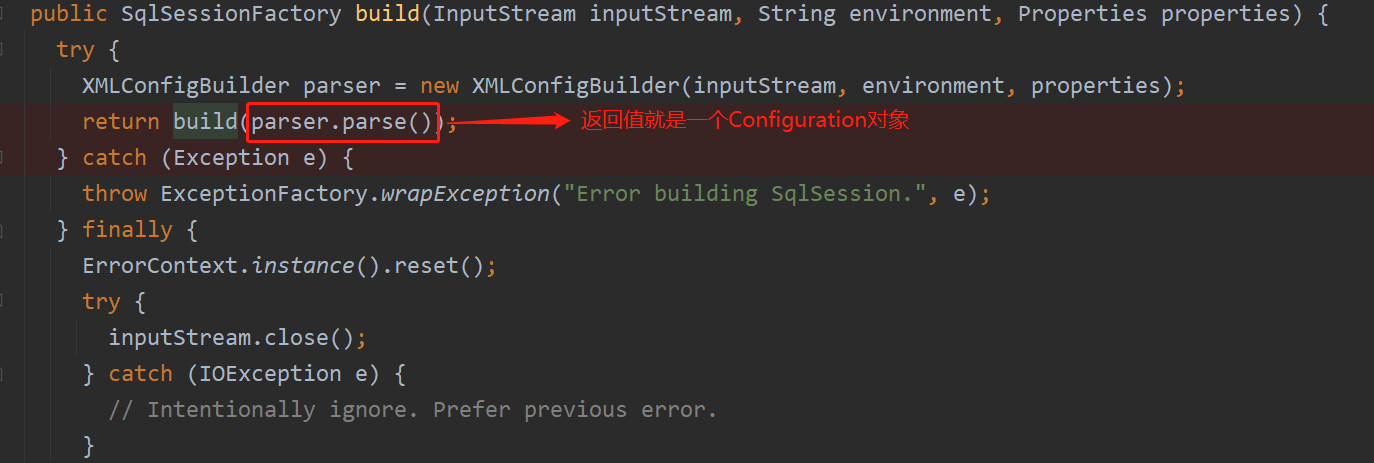 - parser.parse()方法的返回值就是一个Configuration对象,将其传入build中