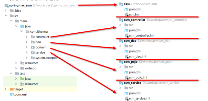 1、模块中仅包含当前模块对应的功能类与配置文件 2、spring核心配置根据模块功能不同进行独立制作 3、当前模块所依赖的模块通过导入坐标的形式加入当前模块后才可以使用 4、web.xml需要加载所有的spring核心配置文件