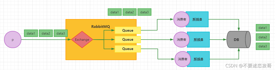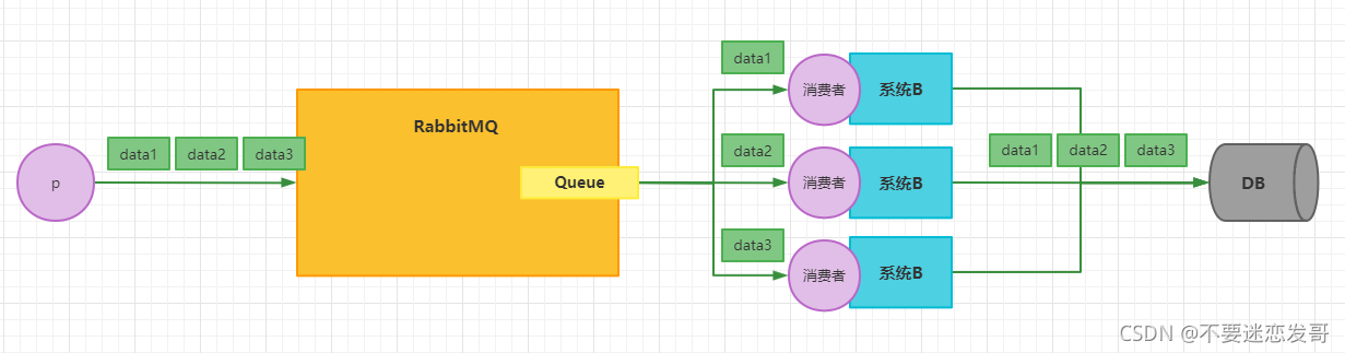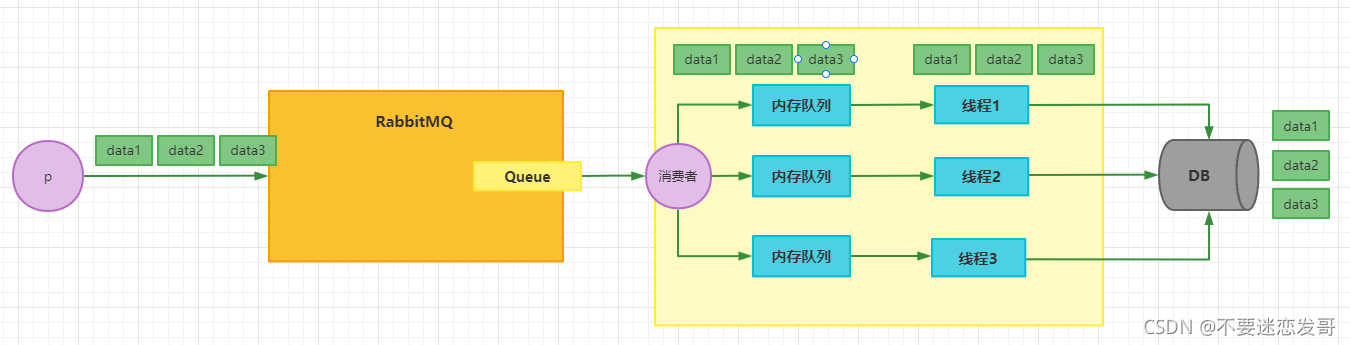 data1/data2/data3,压入的是 RabbitMQ 的一个内存队列。有三个消费者分别从 MQ 中消费这三条数据中的一条,结果消费者 2 先执行完操作,把 data2 存入数据库,然后是 data1/data3。这不明显乱了。