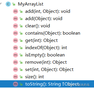 ????????ArrayList定位为动态数组,底层是一个可以自动扩容的数组,用于存储同类型的数据。那么自己DIY的ArrayList就必须满足这些功能操作,结合ArrayList源码,确定手写的MyArraylist的方法有下面几个:??