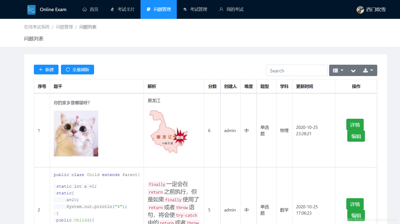 本系统主要实现的功能有: 学生以及老师的注册登录,在线考试,错题查询,学生管理,问题管理,错题管理,错题查询,分数查询,试卷管 理,人工组卷。自动组卷,教师,班级,统计等等管理功能。