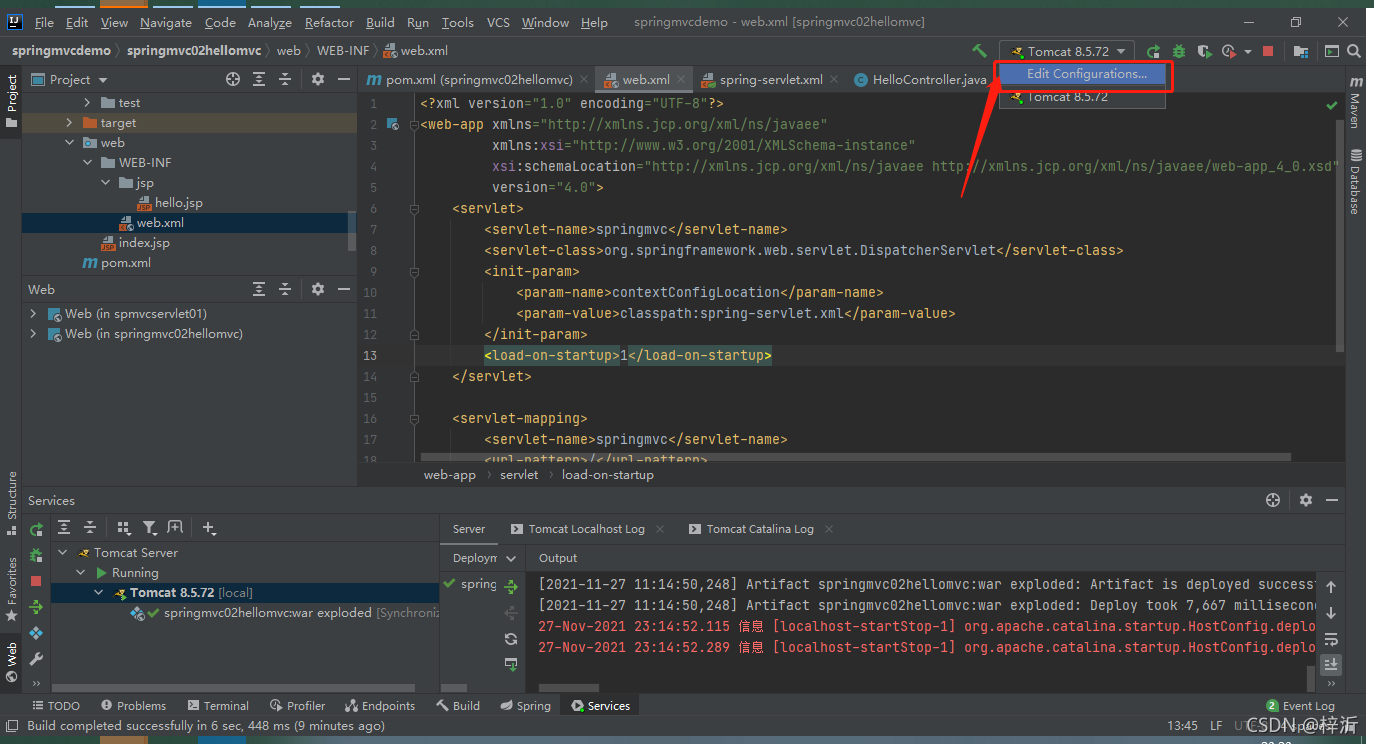 怀疑tomcat8.5.72不支持spring5.3.13,我下了一个tomcat9.0.55,就在想办法配置新的tomcat时,我发现tomcat根路径?不是/