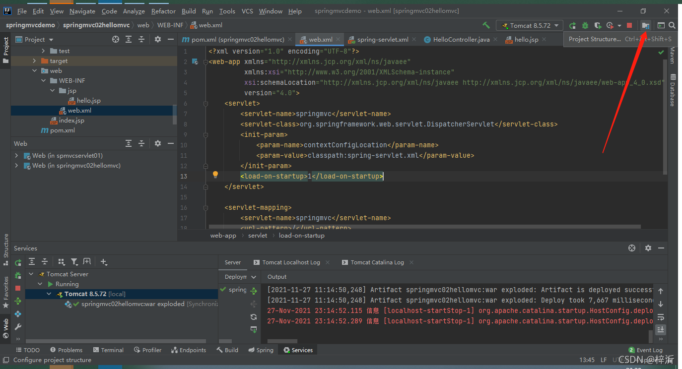 按照初识SpringMVC的教程练习: