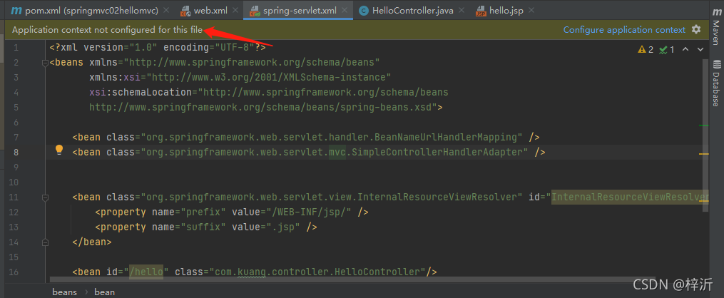<bean id="/hello" class="com.kuang.controller.HelloController"/>