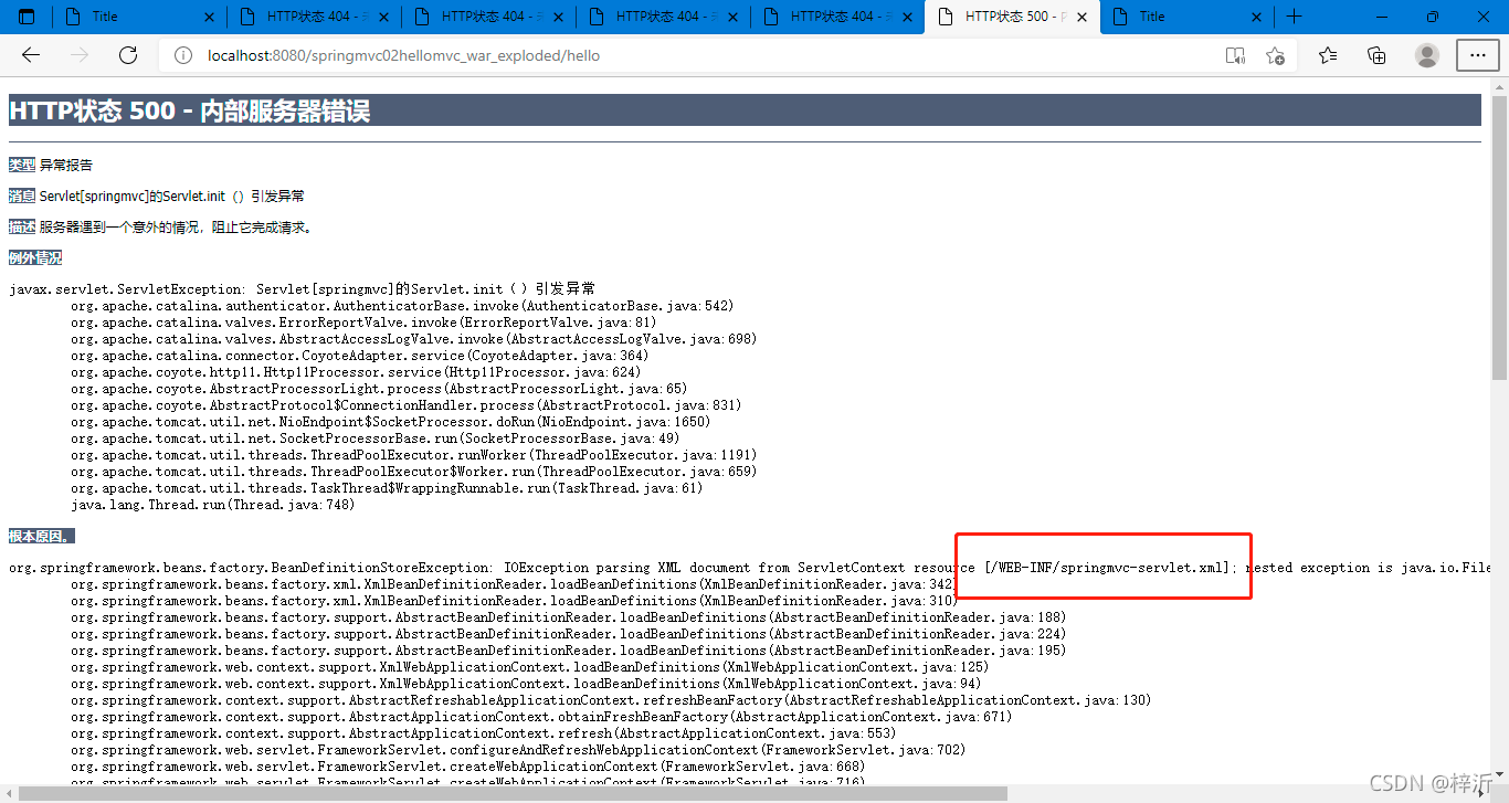 ?找到报错原因,是找不到springmvc-servlet.xml配置文件: