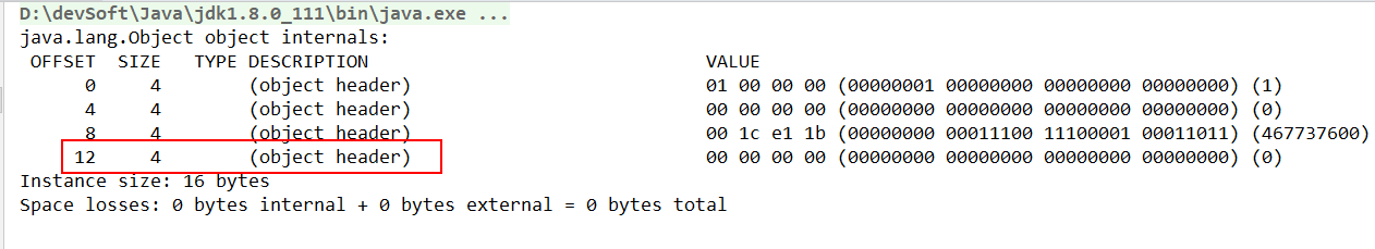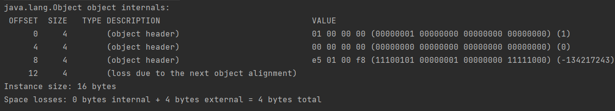 System.out.println(ClassLayout.parseInstance(o).toPrintable());