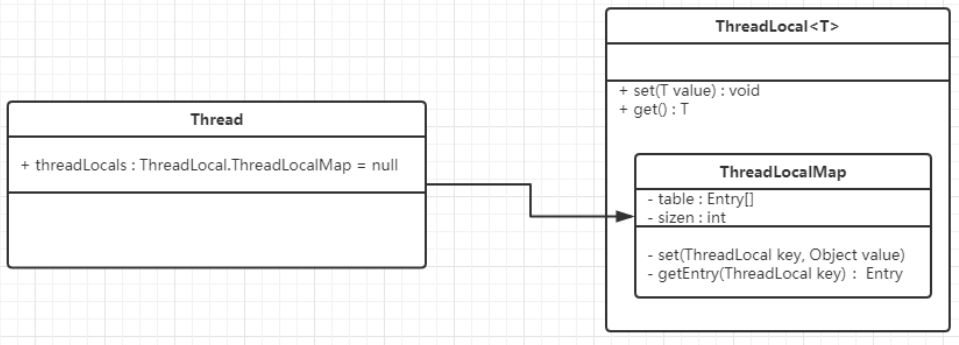 近似的可以理解为: ThreadLocalMap从字面上就可以看出这是一个保存ThreadLocal对象的map(其实是以ThreadLocal为Key),不过是经过了两层包装的ThreadLocal对象:  JVM内部维护了一个线程版的Map<Thread,T>(通过ThreadLocal对象的set方法,结果把ThreadLocal对象自己当做key,放进了ThreadLoalMap中),每个线程要用到这个T的时候,用当前的线程去Map里面获取,通过这样让每个线程都拥有了自己独立的变量,人手一份,竞争条件被彻底消除,在并发模式下是绝对安全的变量。