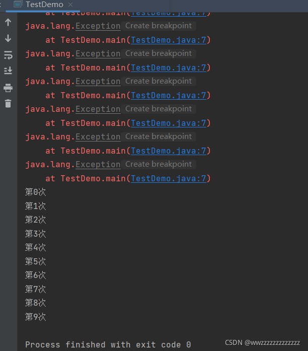 结论: 一旦发现了异常,程序就终止了,所以heihei不会被正常输出.