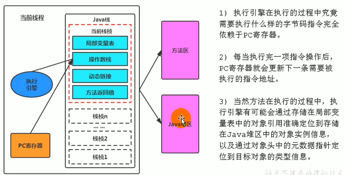 执行引擎:将运行时数据区的指令翻译成机器指令,供CPU执行。