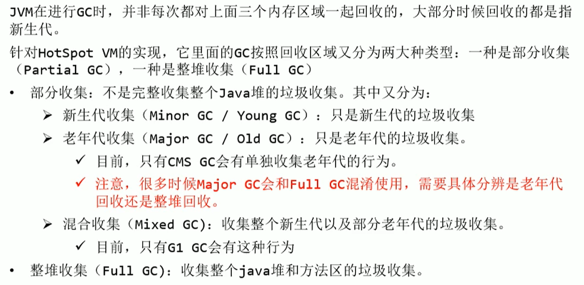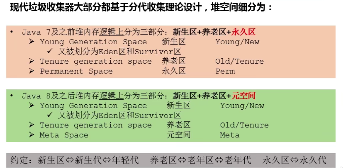 4. 关于垃圾回收:频繁在新生区收集,很少在养老区收集,几乎不在永久区/元空间收集。
