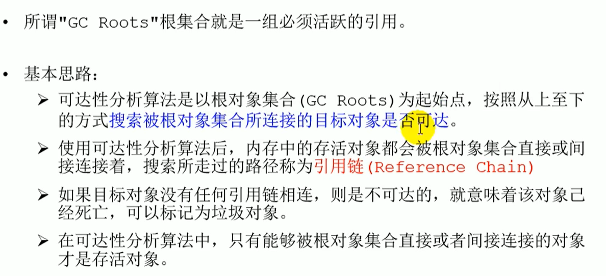 垃圾标记阶段:对象存活判断-----》对象存活的两种方式:上述的引用计数和可达性分析算法。